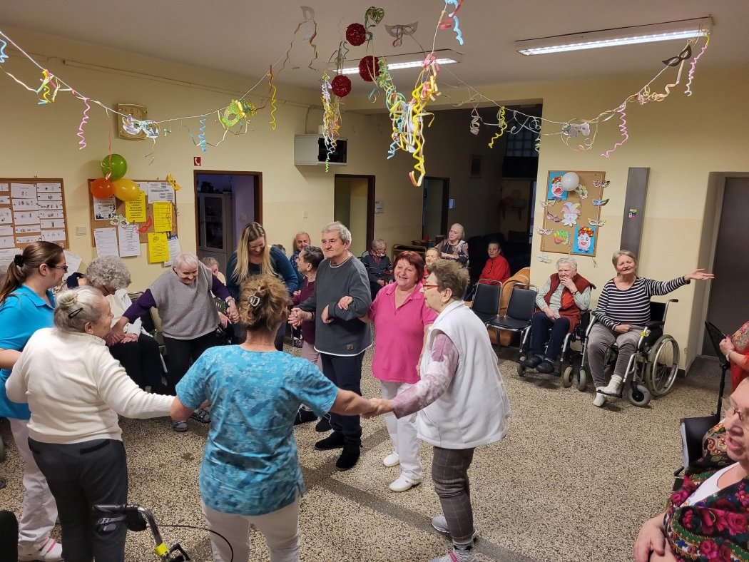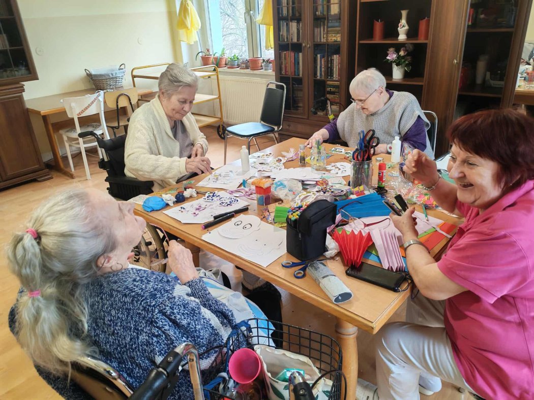 Február sme odštartovali vo fašiangovom duchu. Naši seniori sa s chuťou pustili do výroby pestrých dekorácií, ktoré rozveselili celé naše zariadenie. Spoločné vystrihovanie, lepenie a zdobenie prebehlo v priateľskej atmosfére plnej smiechu a tvorivej energie. Hotová výzdoba nám potom pripomínala, že radosť sa dá vyčariť aj z kúska farebného papiera.