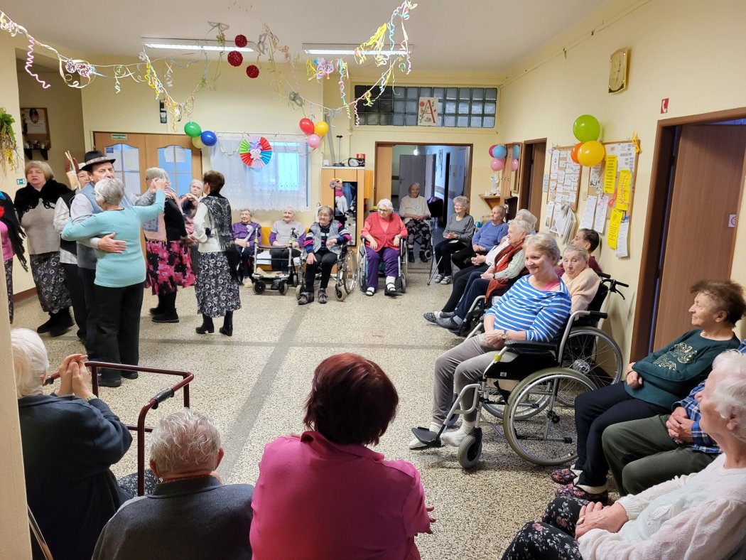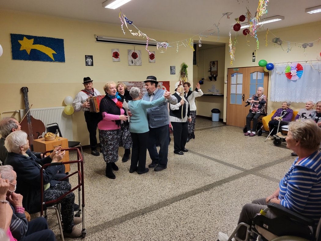 Našich klientov svojím oduševneným vystúpením opäť potešila skupina Vartovka. Ich ľudové piesne, energia a úprimný prejav rozospievali celú miestnosť. Seniori s nadšením tlieskali a mnohí si ani nevšimli, ako rýchlo čas ubehol. Hudba nás opäť všetkých spojila a priniesla pohodu do srdca každého z nás.