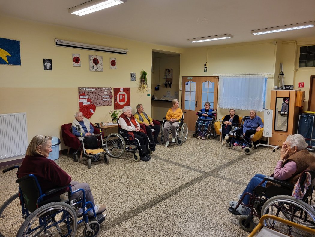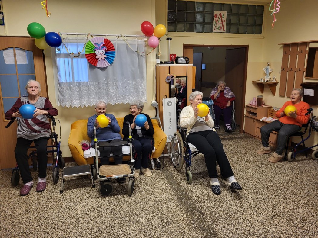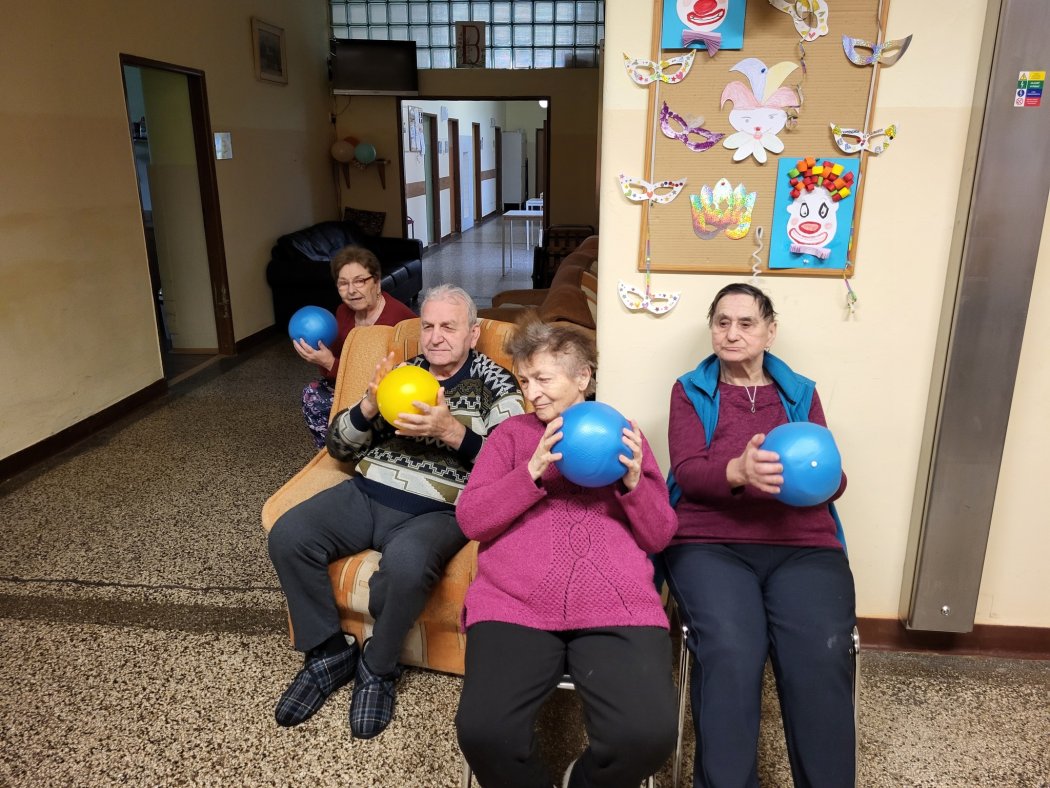 Koniec februára bol zameraný na jemnú motoriku a celkové prekrvenie organizmu vďaka loptičkovej facilitácii. Seniori si s úsmevom a za sprievodu príjemnej atmosféry s inštruktorkou sociálnej rehabilitácie precvičili a jemnou masážou prekrvili telo pomocou penových loptičiek. Táto jednoduchá, o to však účinnejšia aktivita priniesla nielen pohyb, ale aj množstvo smiechu, uvoľnenia a radosti z dobre stráveného času.